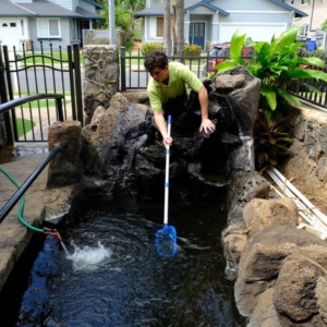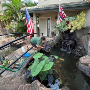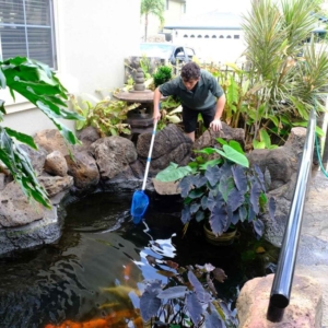 We offer thorough maintenance services and unmatched customer service so that your pond, waterfall, or fountain, stays gorgeous all year long. Our services and prices can be customized depending upon your needs: cutting back plants, general cleaning and maintenance of pumps, filters, ultraviolet lights, repair and replacement of bulbs and pond lights, water quality tests, installation or replacement of Koi heaters, clarifiers, fish, and food. We offer cleaning services as well as monthly and bi-monthly service plans. The frequency of required maintenance will depend on the specific attributes of a pond, primarily physical size, volume of plant and fish life, and surrounding foliage.